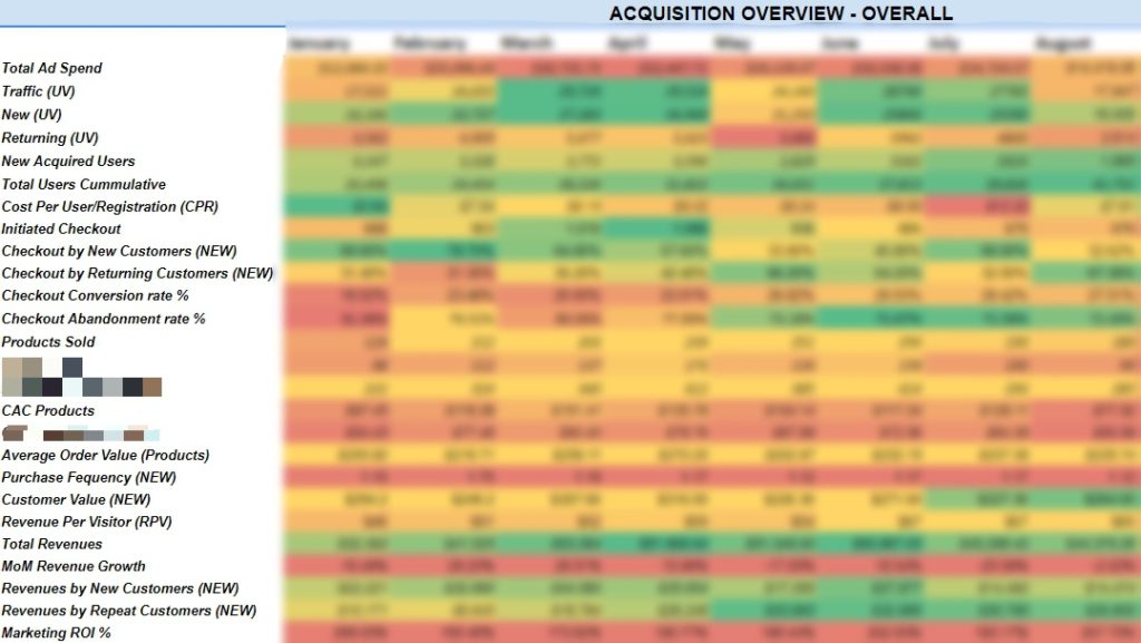This screenshot of a report GrowthRabbit created for a client provides a snapshot of the metrics Chintan and his team use to develop the cost of acquisition (CAC).